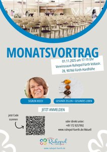 Am 1. November 2025 nimmt uns Sigrun Hoch, Expertin in der funktionellen Mikronährstoffdiagnostik und Botschafterin für Happy Aging, mit in die Welt der Mikronährstoffe. Wir bekommen Einblicke, warum es heute wichtiger ist denn je, möglichst lange gesunde Zellen zu haben, und welchen Einfluss sie auf ein langes, vitales und gesundes Leben haben. Sigrun Hoch verdeutlicht, warum unsere Nahrung heute nicht mehr die Nährstoffe enthält, die unser Körper zum Gesundbleiben braucht und wir deshalb die Nährstoffe ergänzen müssen. Dabei stellt sie drei der wichtigsten Nährstoffe in den Fokus. Das sind die Omega 6- und Omega 3 -Fettsäuren, die Vitamine K2 und D3, und wir werfen einen kurzen Blick auf Collagen, unser Strukturprotein.