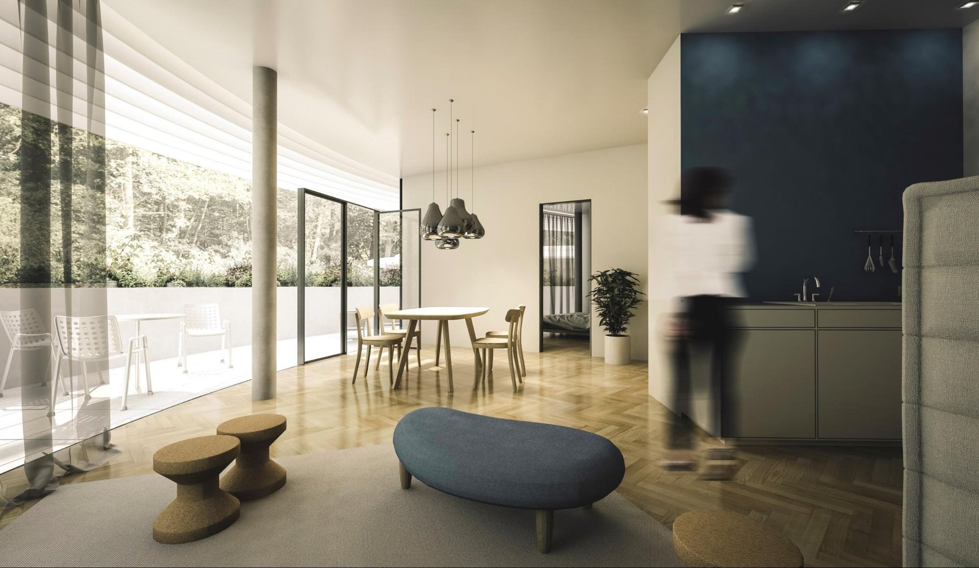 Mit dem Rosengarten im Zentrum der Dachterrasse ist es ein besonderer Genuss, in die erholsame Ruhe zu kommen, zu lesen oder die Seele baumeln zu lassen. Die Dachterrasse steht einzig den Bewohnern dieser Etage zur Verfügung.